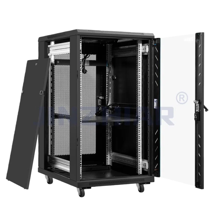 - 22-inch international standard network cabinet, cold-rolled steel, 800-1000KG static load