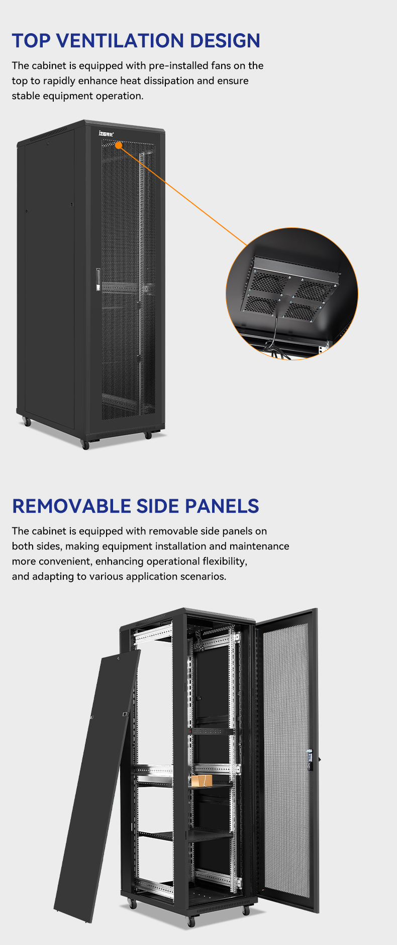 - Network cabinet with top pre-installed fans for rapid heat dissipation, stable operation